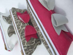 Boasting one of the season’s hottest trends, this luxurious leather makeup bag in various colors fuschia, white and snakeskin featuring a bow. These bags are to hold all the smaller items such as makeup and personal care items.