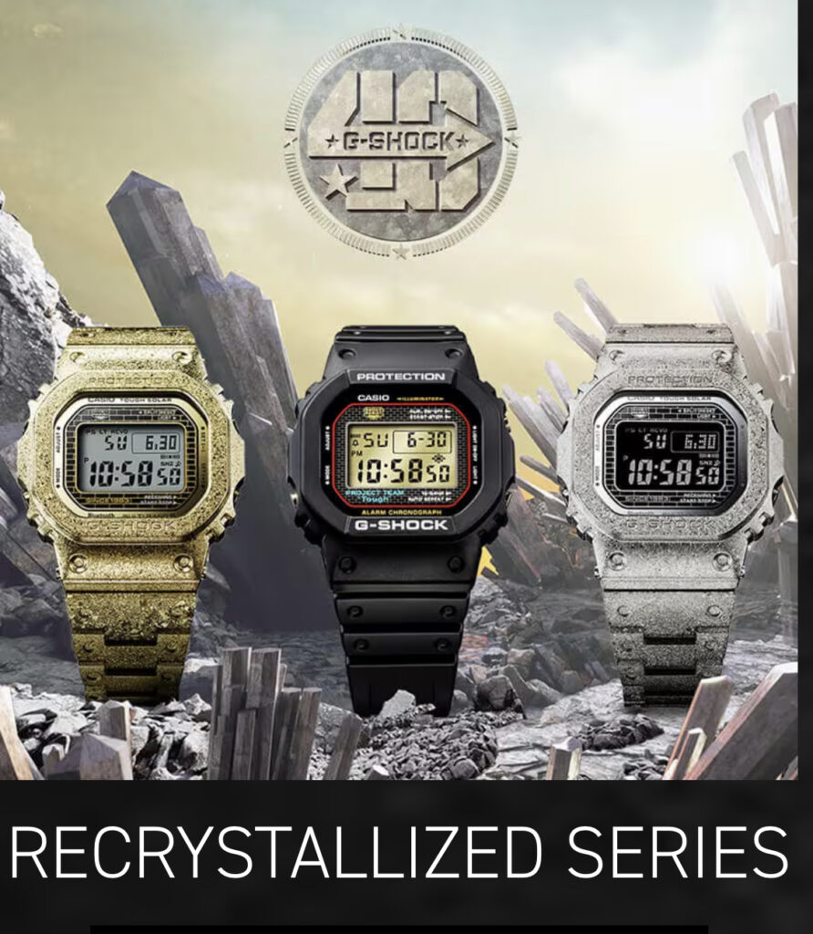 G-SHOCK is celebrating its 40th Anniversary with a dream project.MR-G Shougeki-Maru:Gai. G-SHOCK 40TH ANNIVERSARY MODEL. MR-G FROGMAN. G-SHOCK 40TH ANNIVERSARY MODEL. CLEAR REMIX. G-SHOCK 40TH ANNIVERSARY MODEL. REMASTER BLACK. G–SHOCK 40TH ANNIVERSARY MODEL.