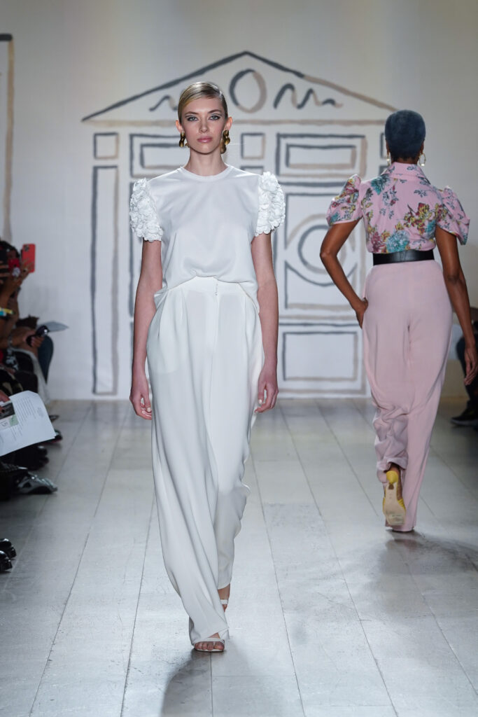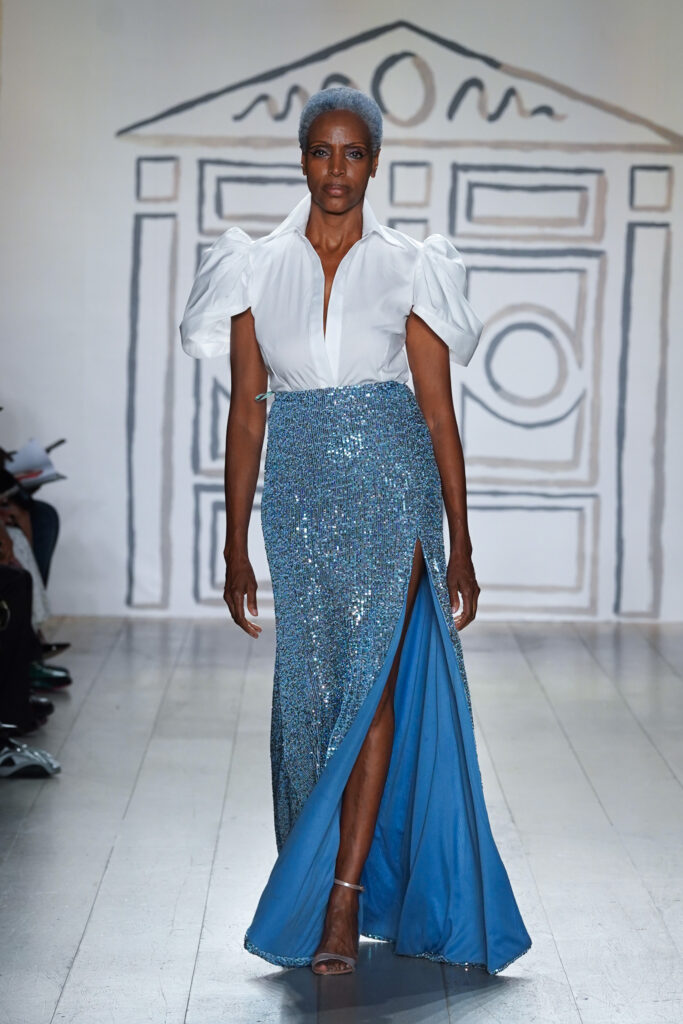 In attendance at the show were many fashion legends including Teri Agins, Constance White and Harriette Cole. Fellow designers Byron Lars, Sheila Gray, Sergio Hudson, Epperson, as well as many from Hall’s organization the Black Design Collective were out in support. Steven Kolb and CaSandra Diggs from the CFDA were in attendance, as were Belle Bakst, Caroline Vazzana, Chris Lavish, recording artist Nicole Henry, and Lindsey Coffey – Miss Earth 2020. Hall also worked with iconic model Coco Mitchell who graced the runway to the great applause of the crowd.