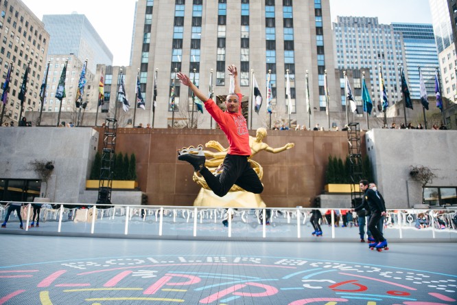 Starting this Friday, April 15, Rockefeller Center’s iconic ice rink will turn into a fabulously rockin’, ’80s-era roller skating rink that will be there all summer long. It’s the first time it’s happened since 1940, when the plaza briefly became a roller rink for the warmer seasons. And we got a sneak peek of what it looks like for its total transformation!